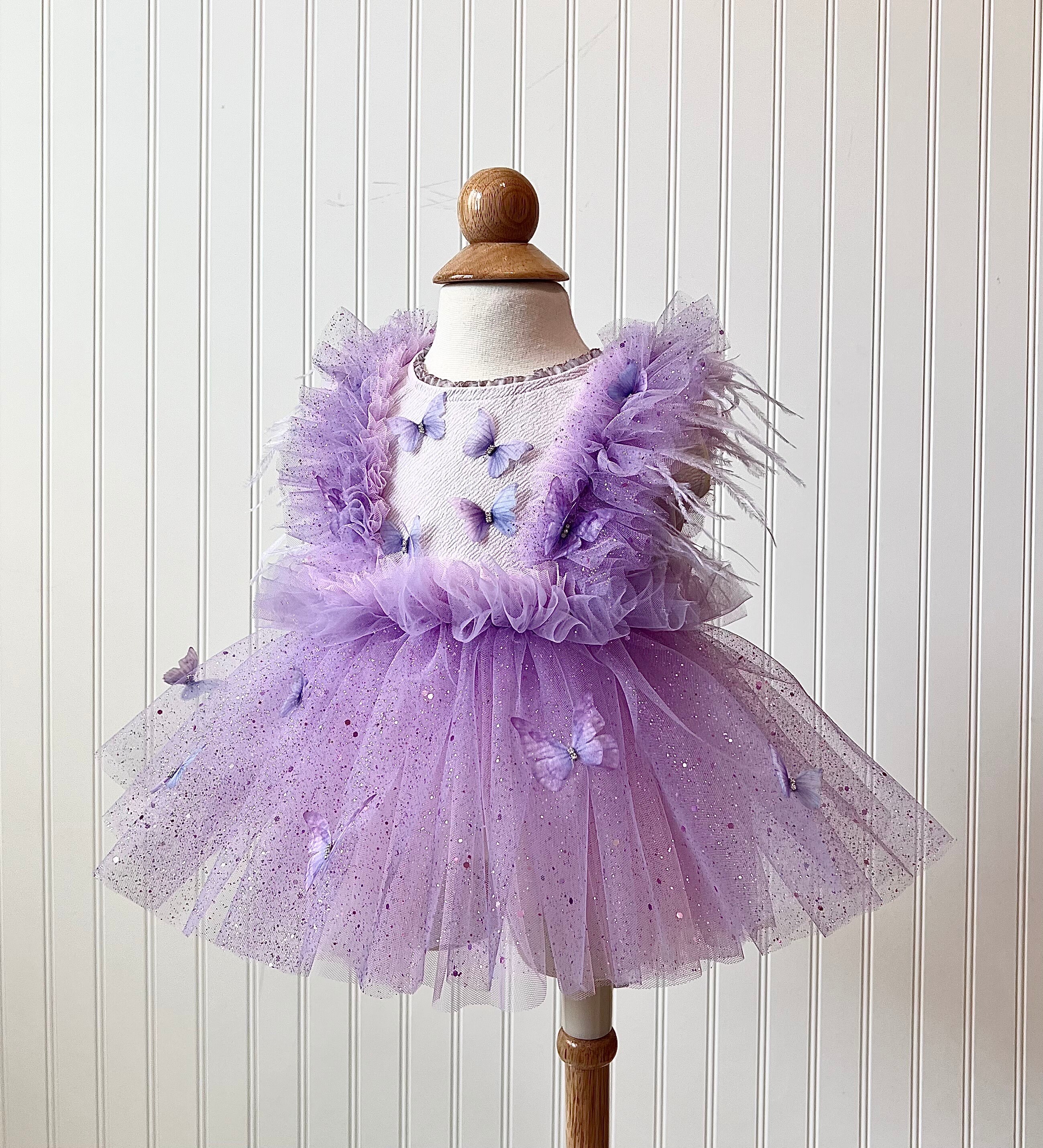 Girls Dress Purple Butterfly Scallop Neckline Sunny Fashion